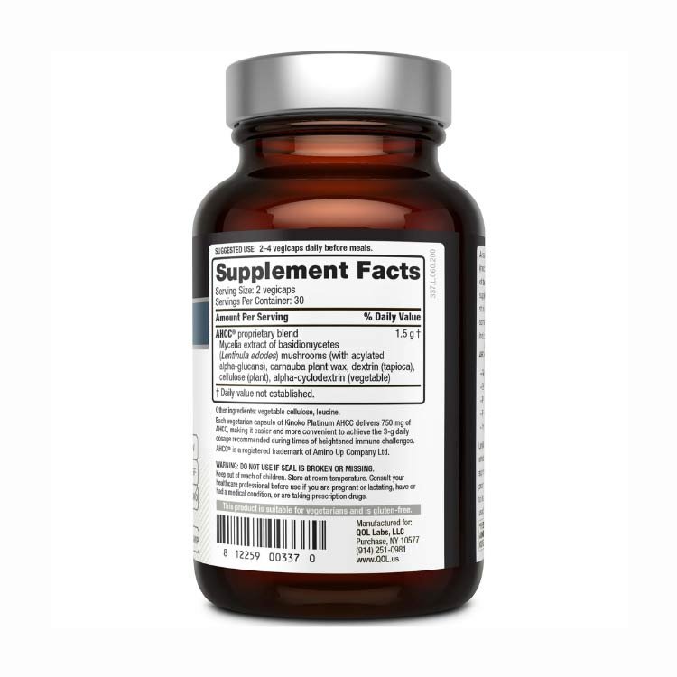 Kinoko Platinum AHCC 750mg از برند معتبر Quality of Life یکی از قویترین مکملهای تخصصی تقویت سیستم ایمنی بدن است که با استفاده از ترکیب ثبتشده AHCC® (Active Hexose Correlated Compound) تولید شده است.
