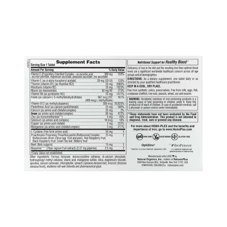 کپسول هماپلکس ۳۰ عددی Nature’s Plus Hema‑Plex Iron یک مکمل آهن با آزادسازی آهسته است که به افزایش سطح آهن خون، بهبود خونسازی، کاهش خستگی و تقویت انرژی بدن کمک می‌کند. این محصول با فرمول ملایم بر معده و مناسب برای استفاده روزانه، گزینه‌ای ایده‌آل برای افرادی است که به دنبال حفظ سلامت عمومی، افزایش انرژی و پیشگیری یا بهبود کم‌خونی خفیف ناشی از فقر آهن هستند.