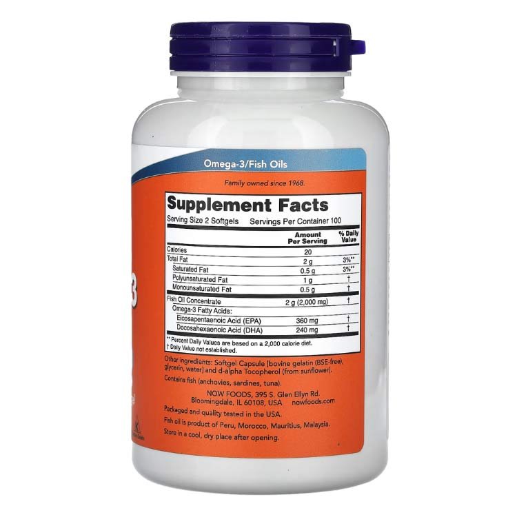 NOW Foods Omega-3 Fish Oil 200 Softgels