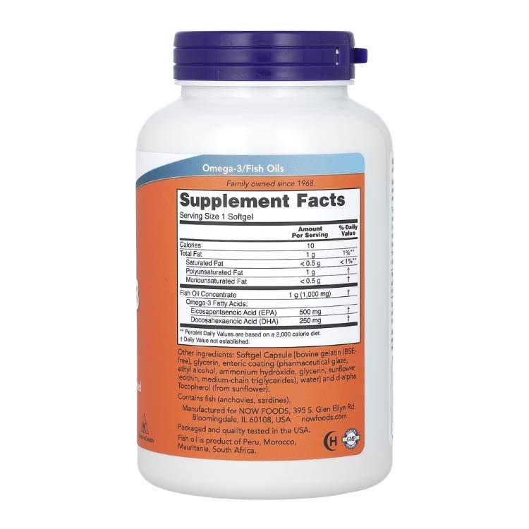 کپسول امگا-۳ Ultra Omega-3 Fish Oil 90 Softgels از برند معتبر NOW Foods یک مکمل روغن ماهی (Fish Oil) با EPA و DHA قوی و قابل جذب است که به بهبود سلامت قلب، مغز، بینایی، سیستم ایمنی و کاهش التهاب بدن کمک میکند. این سافتژلها حاوی ۱۰۰۰ mg روغن ماهی خالص با ۵۰۰ mg EPA و ۲۵۰ mg DHA در هر عدد هستند و دارای پوسته پوششدار (enteric coated) میباشند تا بدون بوی ماهی و با تحمل گوارشی بهتر برای مصرف روزانه طراحی شوند.